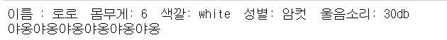 cat1 = Cat("로로",6,"white","암컷", 30)