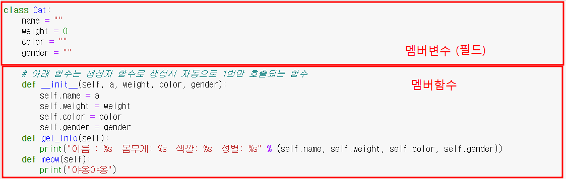 클래스 내부에 __init__ 이라는 명칭으로 선언한 함수는 생성자 함수가 됩니다.
