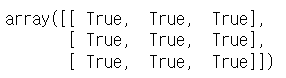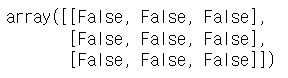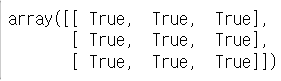 # 반환 : 각 요소마다의 비교결과(T/F)가 배열로 표현됨