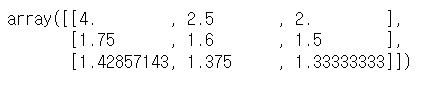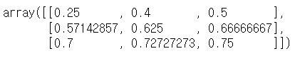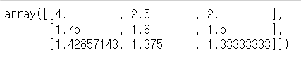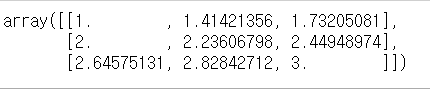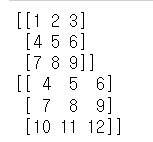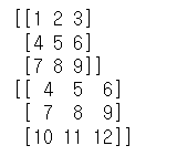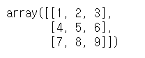 # 1부터 10미만의 범위(지정범위)에서 1씩 증가하는 숫자를 데이터로 가진 3행 3열의 배열