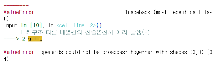 # 구조 다른 배열간의 산술연산시 에러 발생(+)