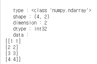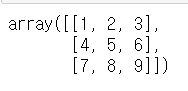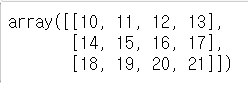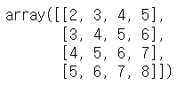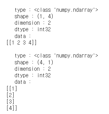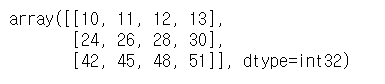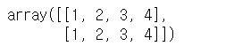 # 행 방향으로 배열 추가(세로길이 증가) 메서드 : np.append(arr1, arr2, axis=0)