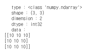# 3행 3열의 구조에 모든 요소가 10인 배열 생성