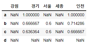 - 공통으로 존재하지 않는 경우 NaN 반환