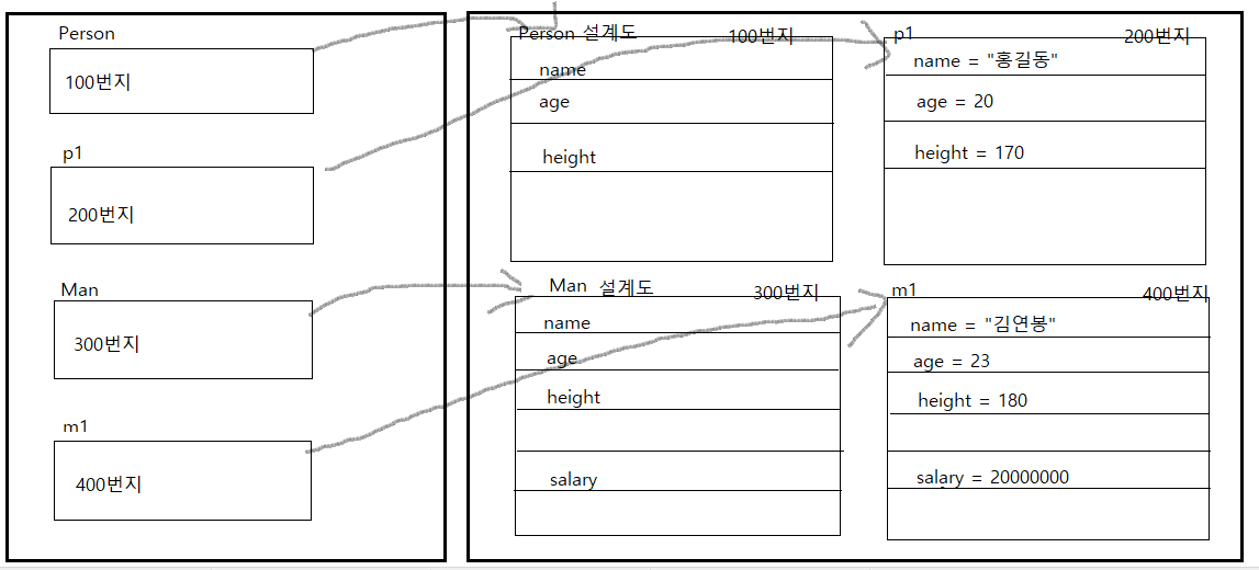 현실과 다른점은 프로그래밍의 상속은 자식이 부모를 지목해 이뤄지며