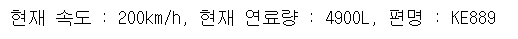print("현재 속도 : %skm/h, 현재 연료량 : %sL, 편명 : %s"