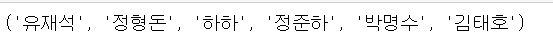 get_member("유재석", "정형돈", "하하", "정준하", "박명수", "김태호")