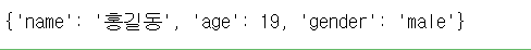 test4(name="홍길동", age=19, gender='male')