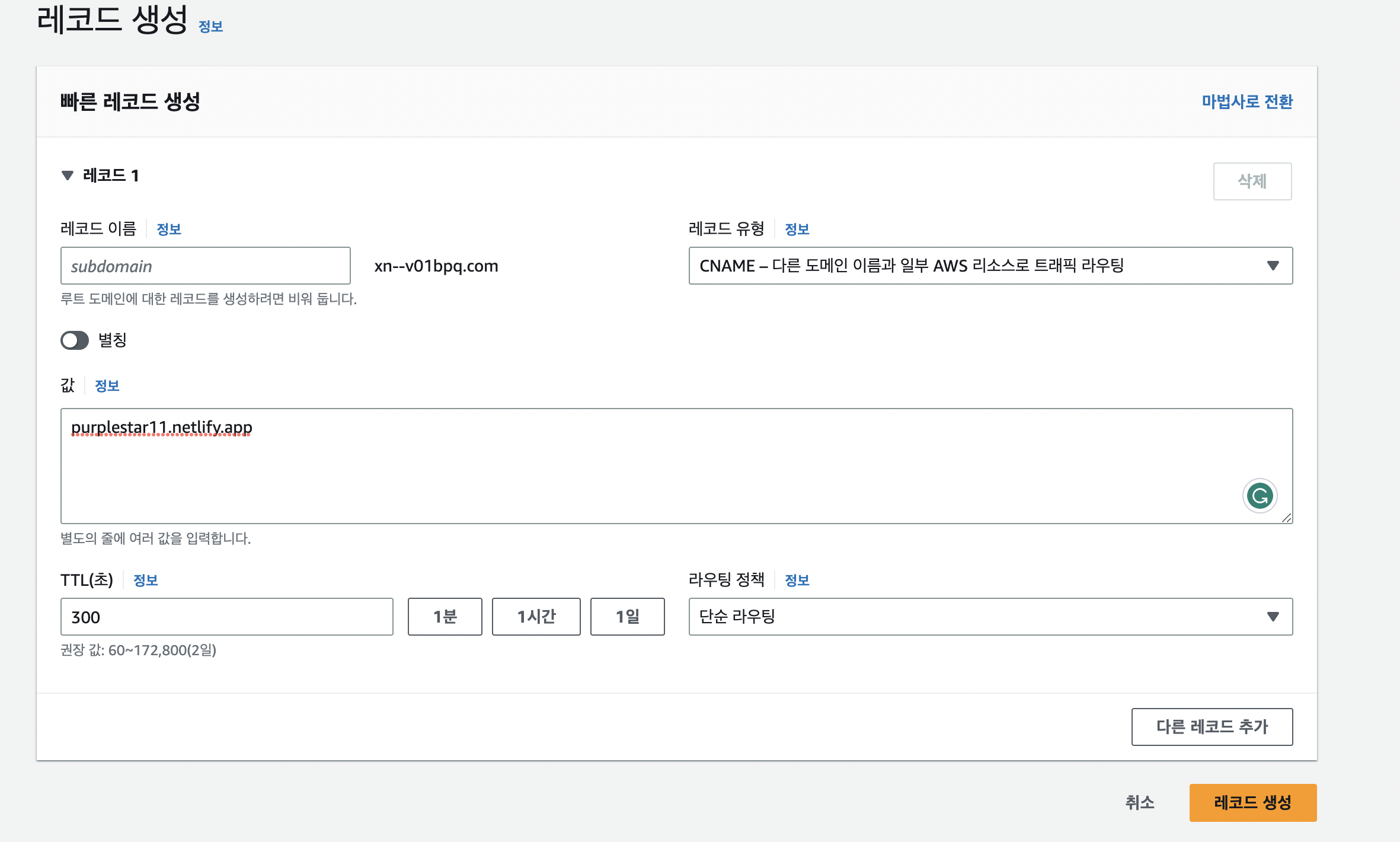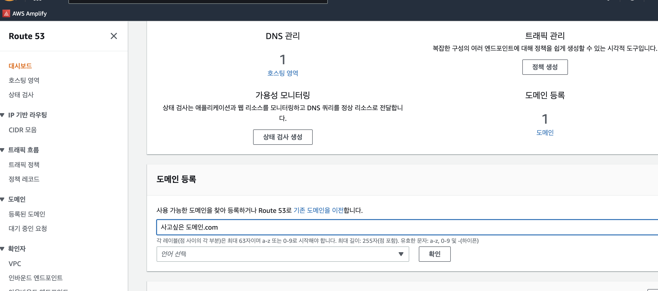 그런데 가만 생각해보니 한글 도메인까지 만들어 주고 싶어서 AWS Route 53을 이용해 도메인 등록해보기로 했다.