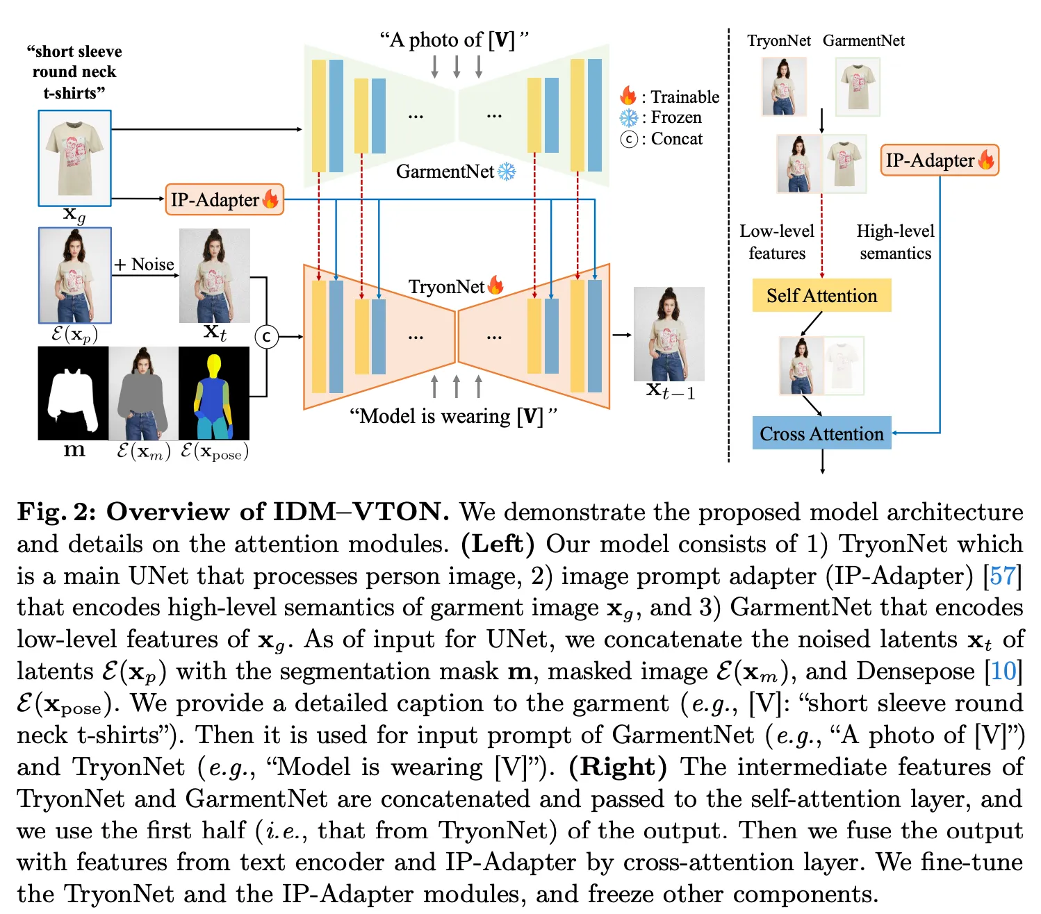 - IP-Adapter feature → TryonNet의 cross-attention layer에 추가된다.