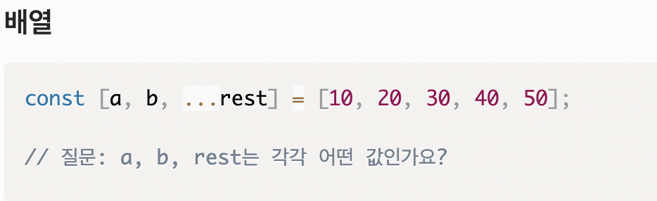 a // 10 , b // 20 , rest // [30, 40, 50] 이 된다.