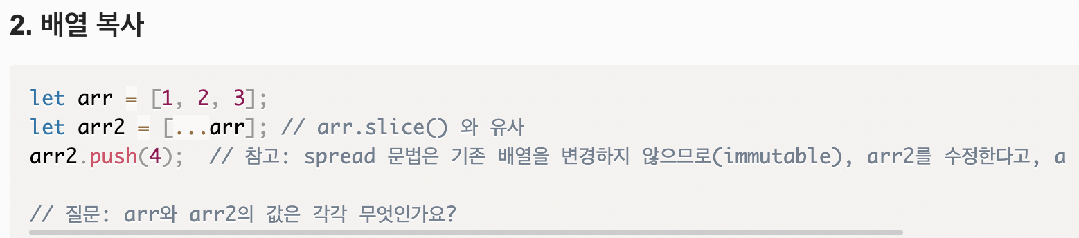 arr1 // [1,2,3], arr2 // [1,2,3,4] 가 된다.