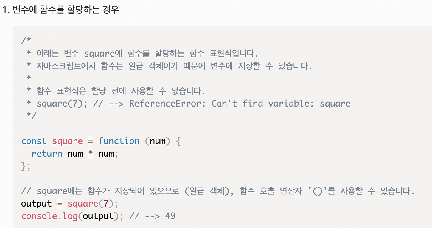 함수 표현식은 변수에 할당한 다음 사용할 수 있다.