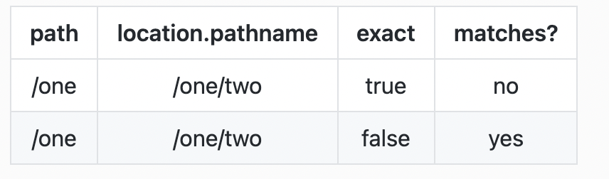 React router의 특성상 exact속성이 없으면 해당 경로(예시의 "/")로 시작하는 중복된 <Route> 컴포넌트를 모두 보여줍니다. exact는 주어진 경로와 정확히 일치해야만 설정한 <Route> 컴포넌트를 보여주는 역할을 합니다.