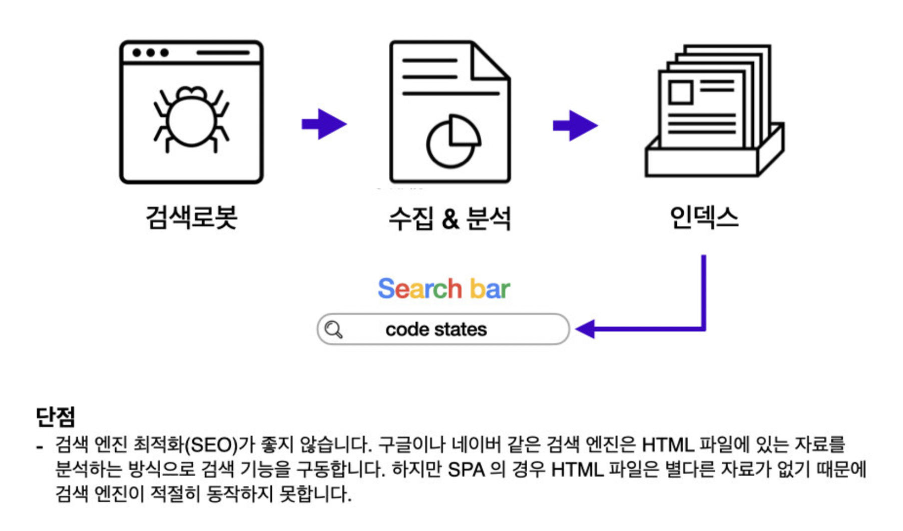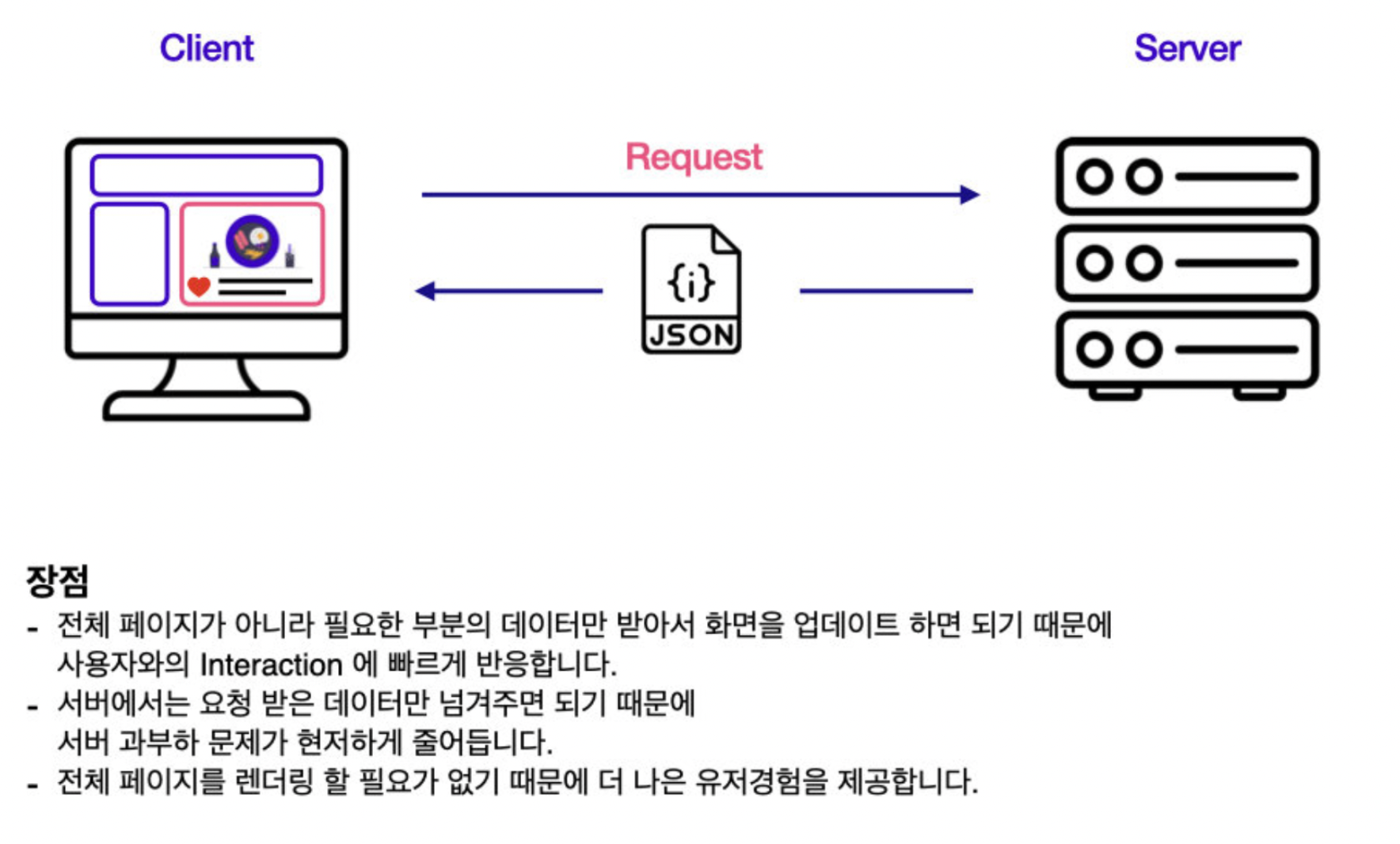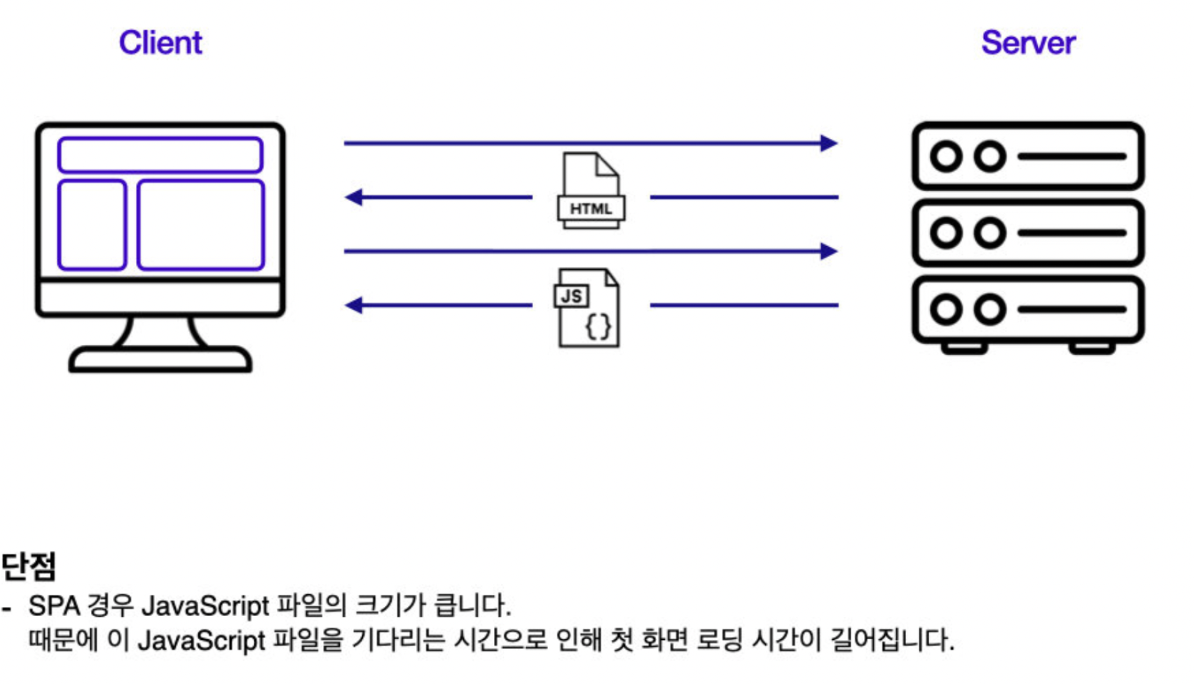 SPA는 서버로부터 완전히 새로운 페이지를 불러오는 것이 아니라, 화면을 업데이트하기 위해 필요한 데이터만 서버에서 전달받아 브라우저에서 해당하는 부분만 업데이트하는 방식으로 작동하는 웹 애플리케이션이나 웹 사이트를 말한다.