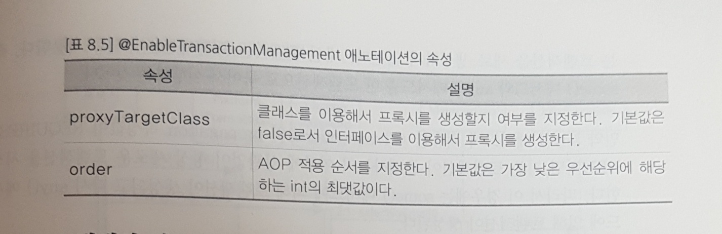 이 어노테이션이 사용된 Spring Bean 객체의 메서드는 트랜잭션 범위에서 실행할 수 있다.@EnableTransactionManagement