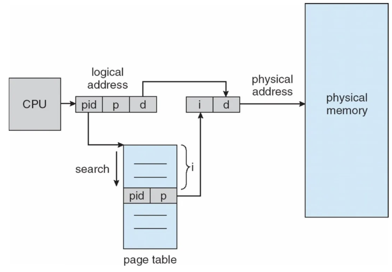 - page가 어느 프레임에 저장되어있는 지 찾기 위해 모든 frame을 다 뒤져보아야함