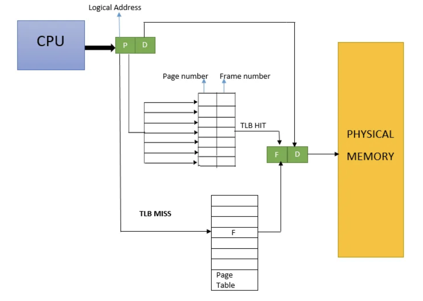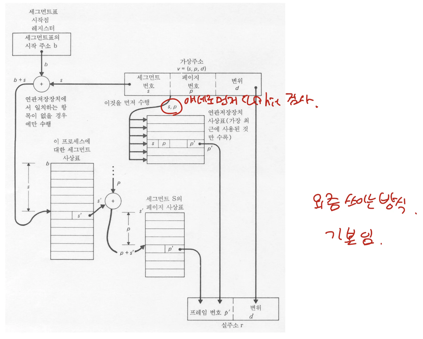 - paging이 없을 때는 logical address를 mmu가 physical address로 변환하고 memory에 한 번만 접근하면 되었으나, paging을 이용하면 memory에 올라와 있는 page table을 참조해야하므로 memory를 두 번 접근해야 함