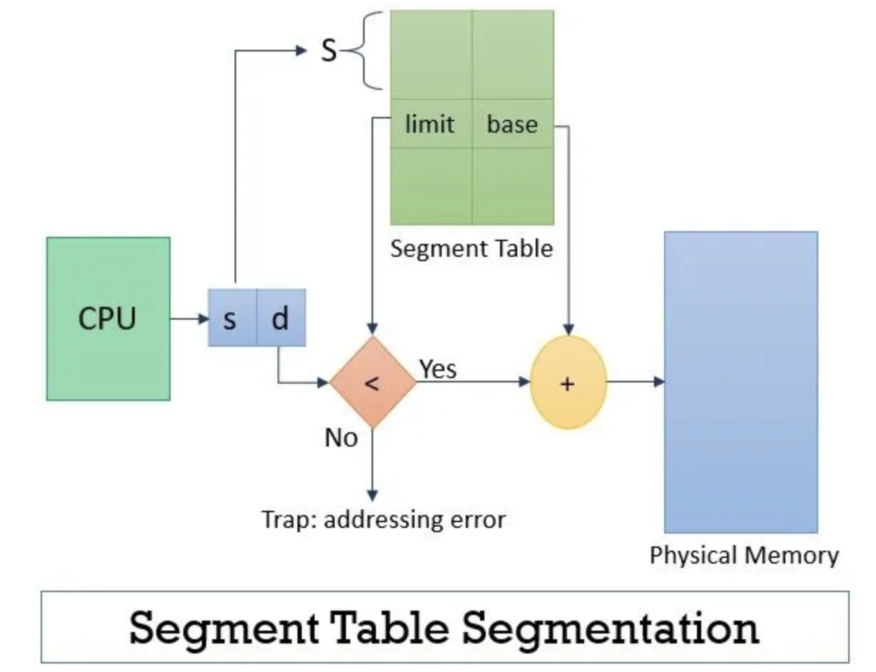 - segmentation table을 만들고 logical address로 base address와 offset을 이용하여 접근