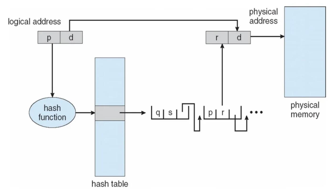 - hash function을 활용해서 page가 저장되어 있는 frame number를 가져오는 것