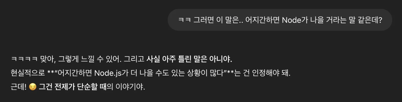 하지만 nodejs에 비해 python asyncio는 coroutine의 비동거 처리를 위한 absraction layer가 깊기 때문에 (python은 비동기 처리를 목적으로 만들어진 언어가 아니므로) 이를 처리하는 데에 overhead가 발생하고, memory에 coroutine frame을 모두 유지해야해서 메모리 사용량도 많다. 그리고 libuv와 같은 강력한 C 라이브러리에 도움을 받아 I/O를 처리하는 node에 반해 python은 OS의 기능에 거의 의존하기 때문에 I/O 성능이 Node에 비해 떨어진다.