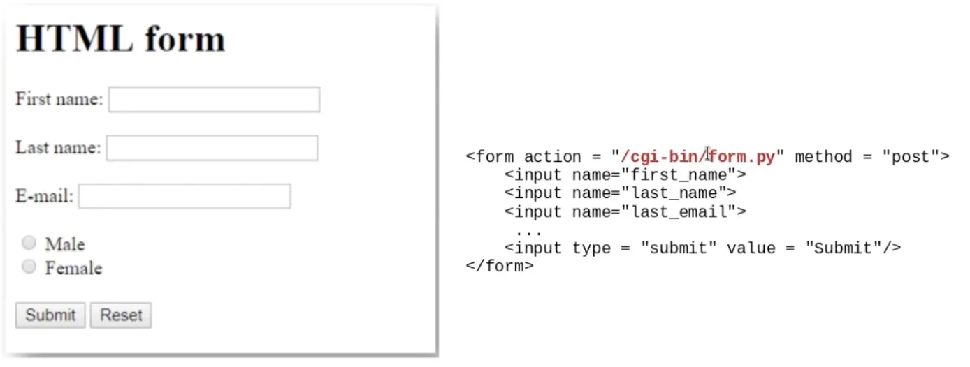그래서 기존에 static page만 전달하는 것을 넘어서, request가 들어오면 미리 저장해둔 스크립트를 실행해보자는 아이디어가 나왔습니다. 예를 들면, python 스크립트인 form.py를 실행시켜 request의 정보를 전달하고 스크립트의 모든 결과를 response로 전달하는 것입니다. 이를 활용하여 사용자에게 입력을 받아서 웹서버에서 원하는 작업을 처리하는 스크립트를 실행하고 그 결과를 response로 전달할 수 있게 되었습니다.