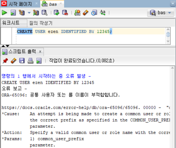 2-1. 오라클 계정 생성하기(ORA-65096)