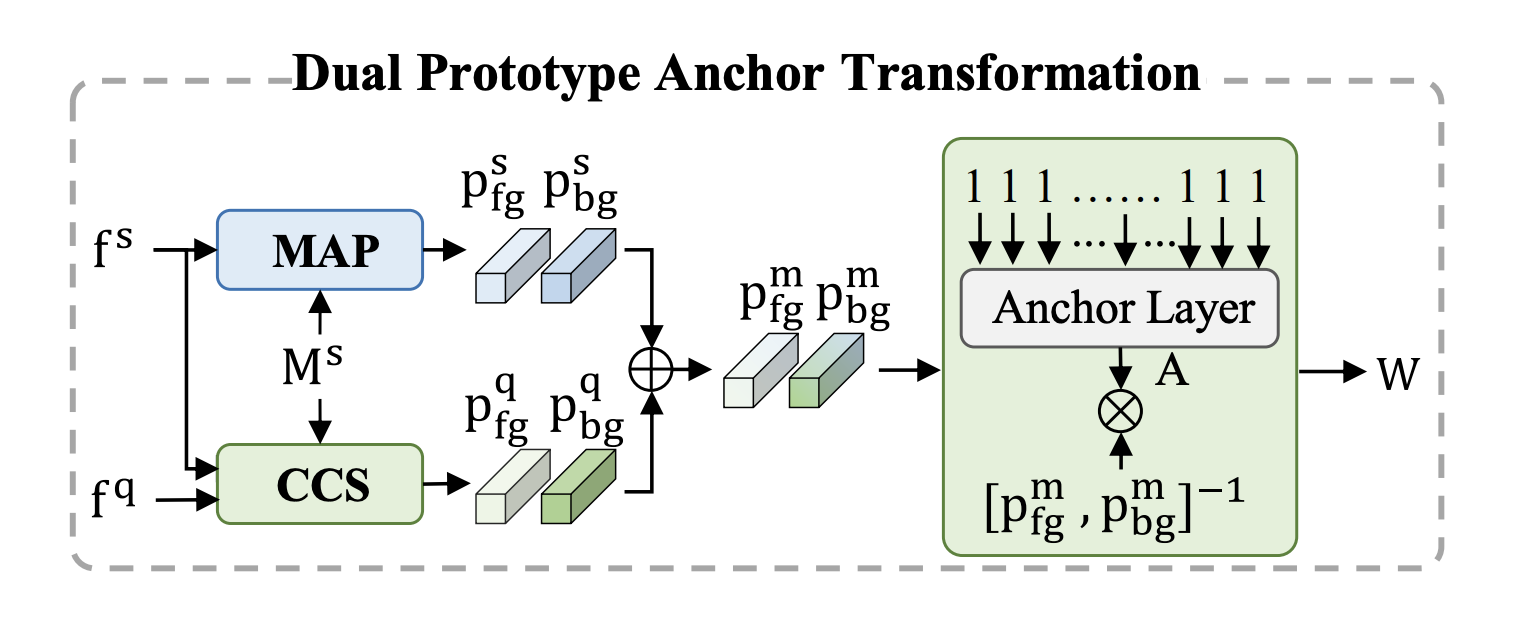 기존 방식과 달리 서포트(support) 이미지의 프로토타입뿐만 아니라, 쿼리(query) 이미지로부터 추출한 의사(pseudo) 프로토타입을 함께 활용하여 변환 행렬을 계산한다.