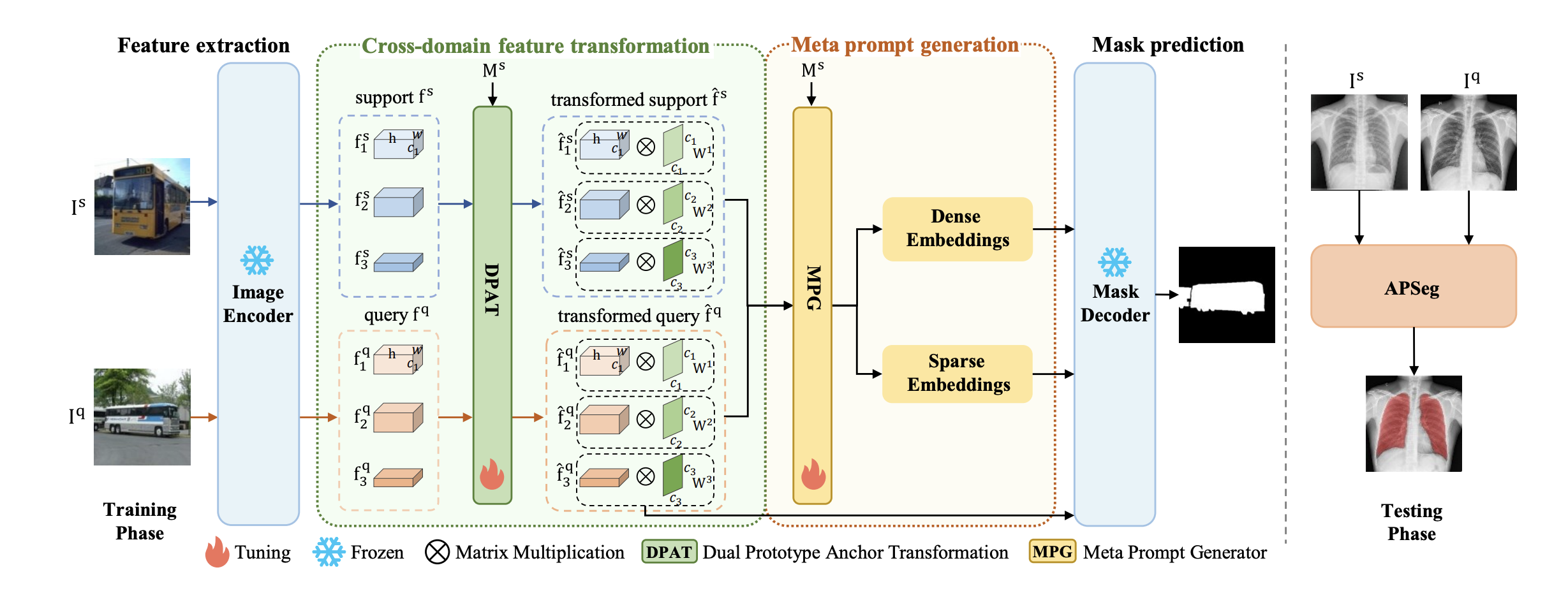 APSeg는 CD-FSS 환경에 SAM을 효과적으로 적용하기 위한 자동 프롬프트 네트워크다.