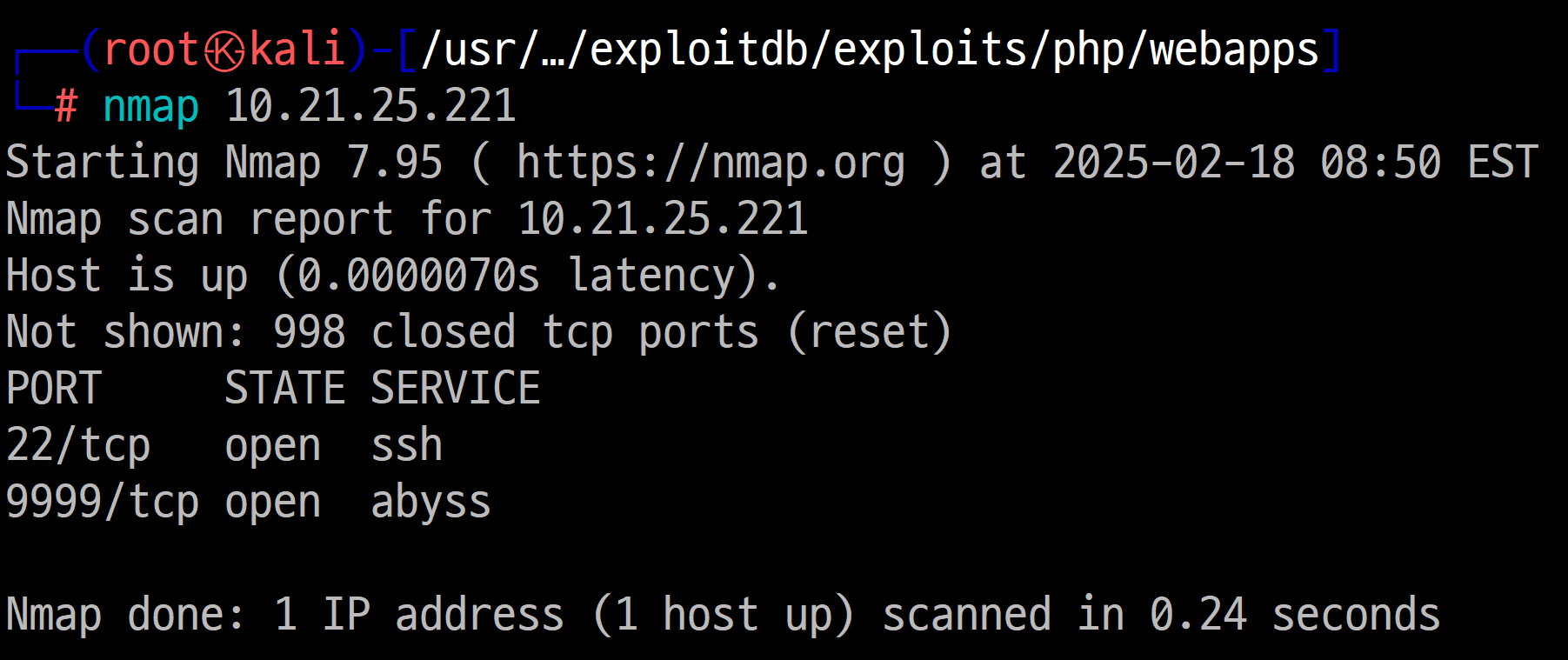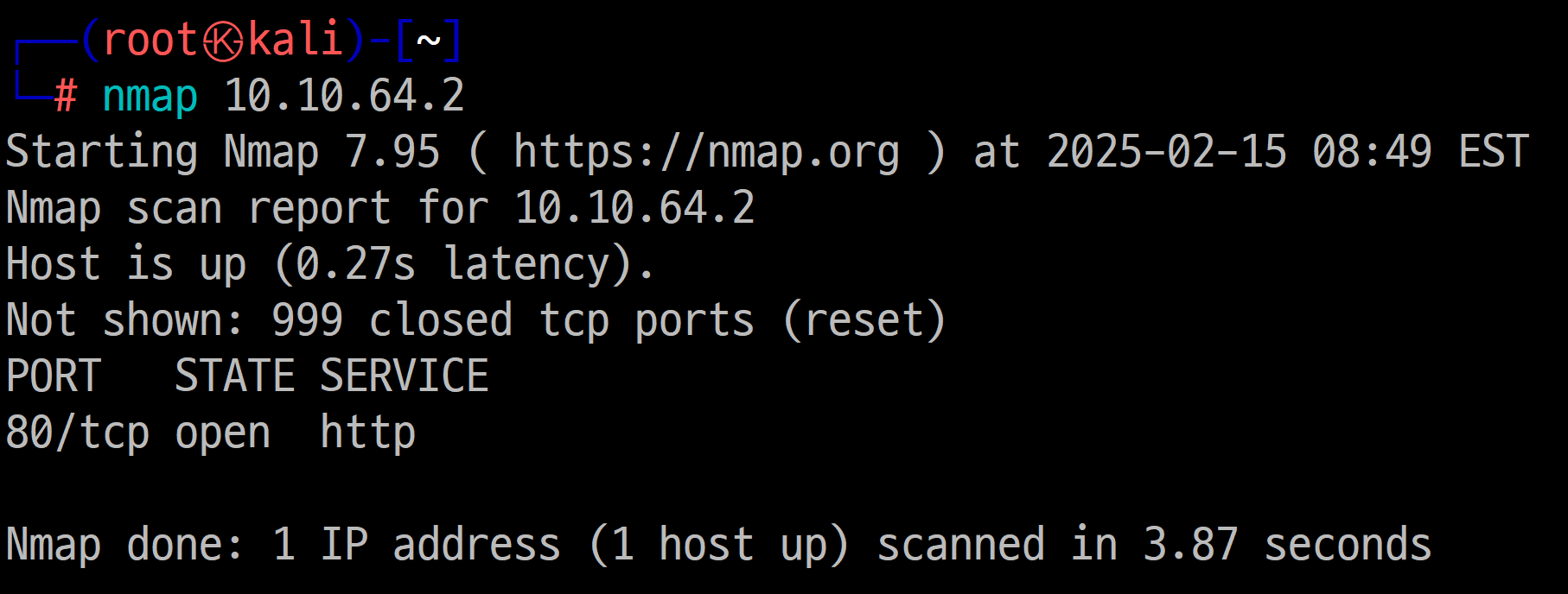 스캔이 끝나면 80번 포트가 열려있는 것을 확인할 수 있습니다.