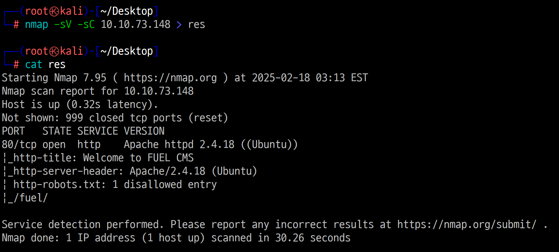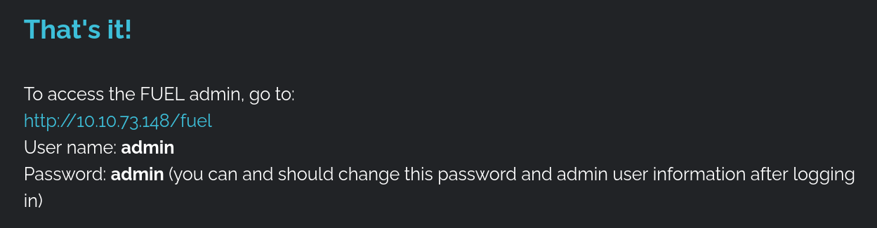 지금까지 80/tcp 포트에서 Fuel CMS 1.4 버전과, Apache 2.4.18 버전이 실행 중이라는 것을 알아냈습니다.
