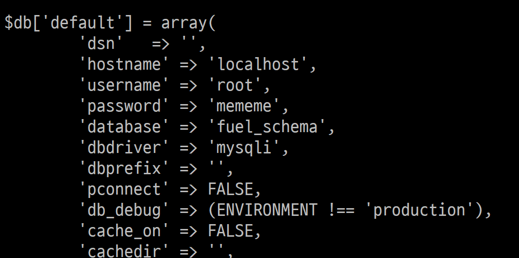 /fuel/application/config/ 에 database.php가 있는 것을 발견했습니다.