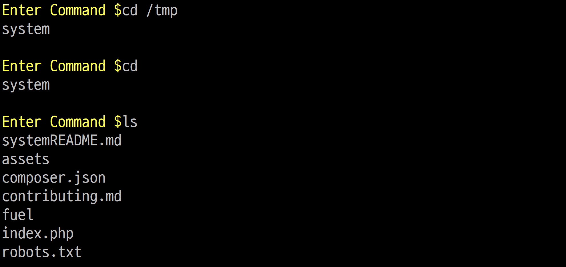 Fuel CMS 프로세스에서 Remote Code Execution 공격을 진행할 수 있다는 것을 확인할 수 있습니다.