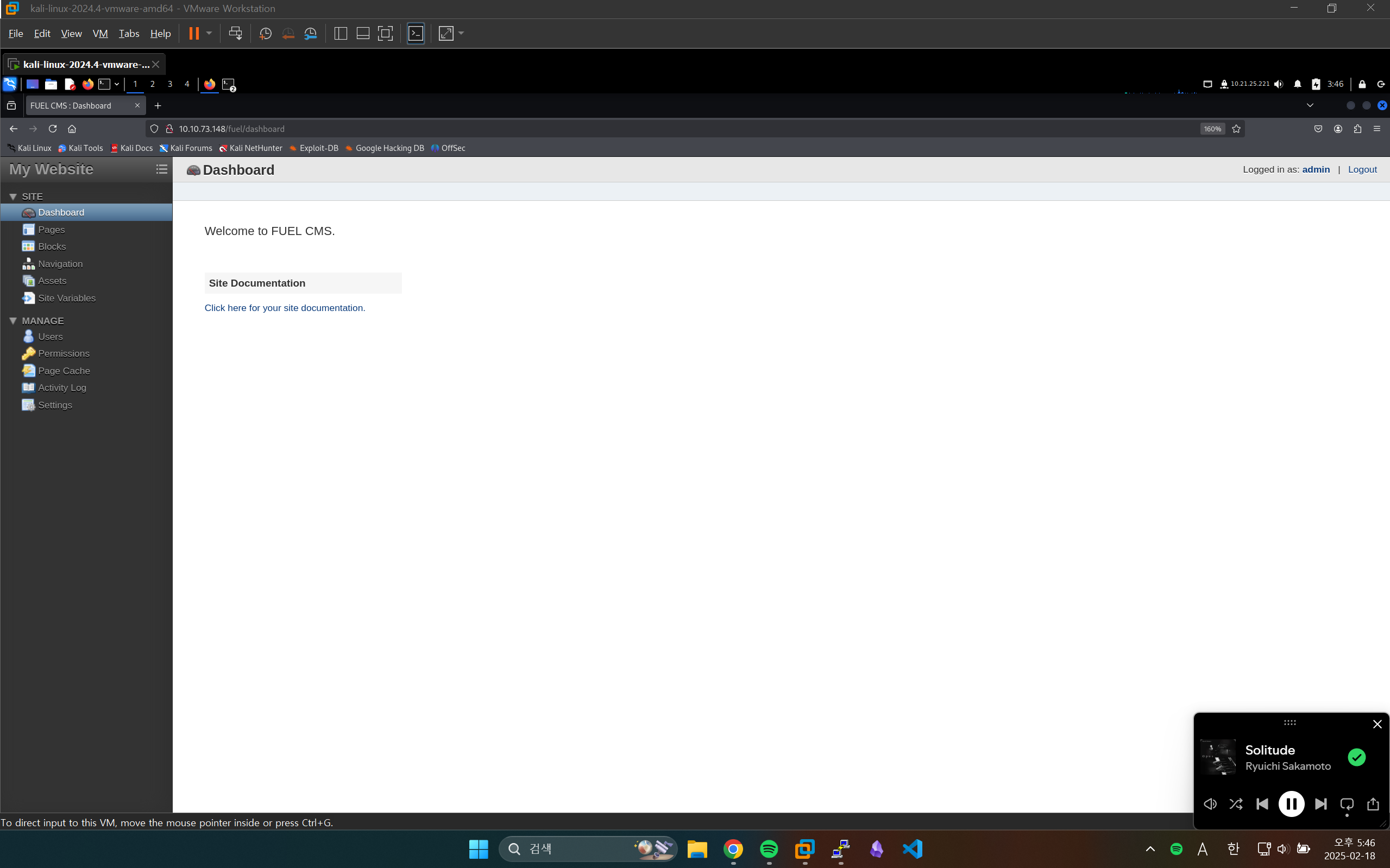 방문한 웹사이트에서 Fuel CMS라고 쓰여진 페이지를 볼 수 있습니다. Fuel CMS는 1.4버전을 사용중인 것으로 보입니다.