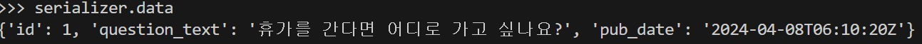 Serialize# Question 모델 첫 번째 값 추출 후 QuestionSerializer에 담기