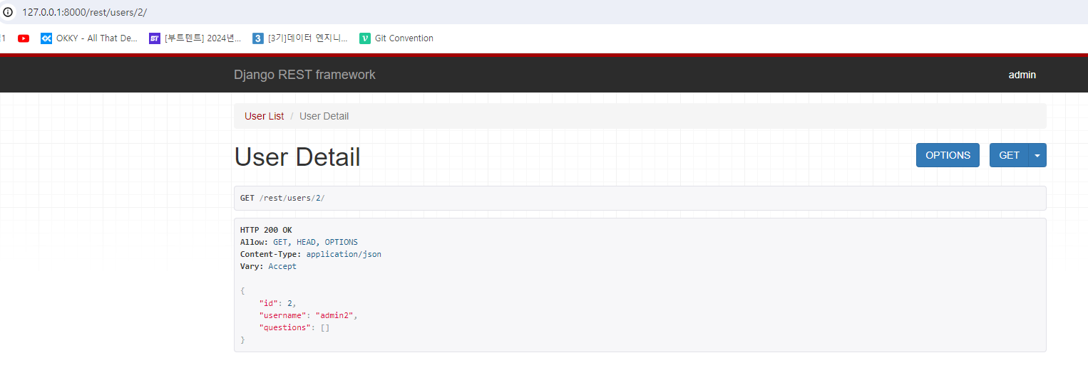 polls_api/serializers.py 파일에 UserSerializer 작성 class UserSerializer(serializers.ModelSerializer):