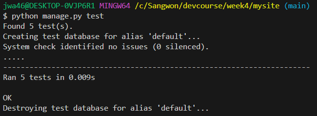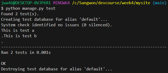 test.py에 test 작성from django.test import TestCase