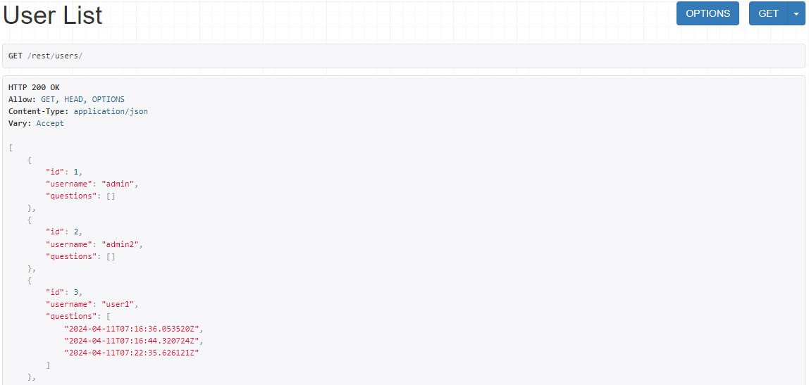 저번에 작성한 코드대로 사용자 목록을 불러왔을 때는 user 내의 questions 에 question id 가 들어있었다. 이 항목을 id 가 아닌 다른 값으로 변경해서 가독성을 올리려 한다.