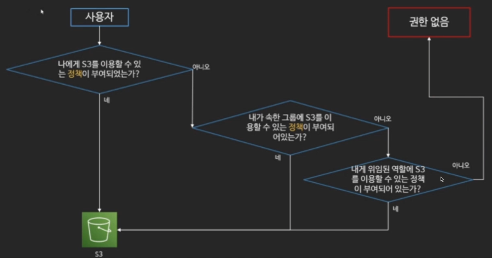 IAM 정책이란 한 마디로 '무엇을 할 수 있는가?' 를 말한다. 정책은 사용자, 사용자 그룹, 역할에 각각 매핑하여 주체별로 사용하거나 접근할 수 있는 리소스를 제어한다.