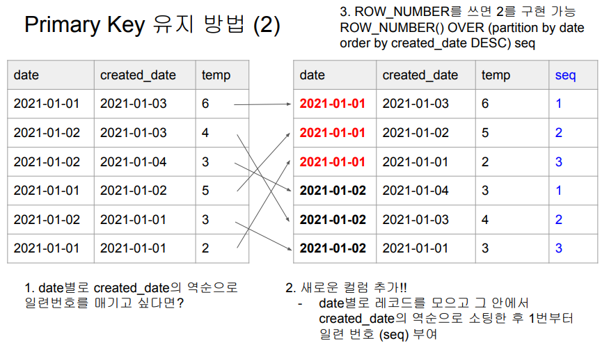 uniqueness를 보장하기 위해 ROW_NUMBER를 사용해서 테이블을 구성하자.