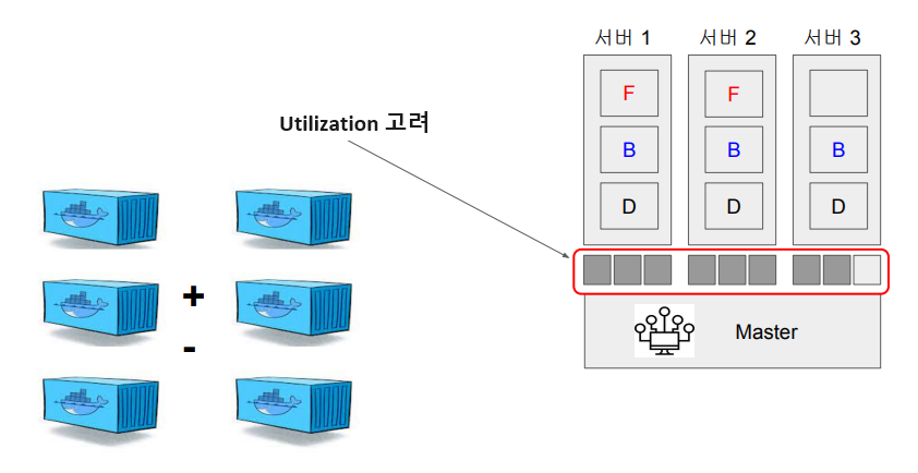 트래픽에 따라서 특정 서비스의 Containe 수를 쉽게 늘리고 줄이는 기능을 말한다. 이 때 서버의 utilization도 고려해서 놀고 있는 서버가 없게, 비슷하게 리소스를 할당한다. 이렇게 컨테이너를 추가하면 컴포넌트 간에 통신이 필요할 때, 서버1의 B에 액세스해야 하는지, 서버2의 B에 액세스해야 하는지를 처리하는 기능이 필요하다. 그 기능은 다음에 소개할 네트워크 기능에서 처리한다.