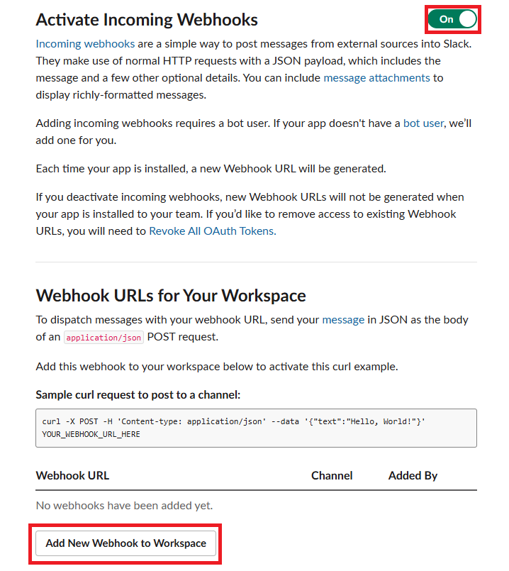 https://api.slack.com/messaging/webhooks 링크를 따라가서 우리의 Workspace에 App을 추가해 주자.