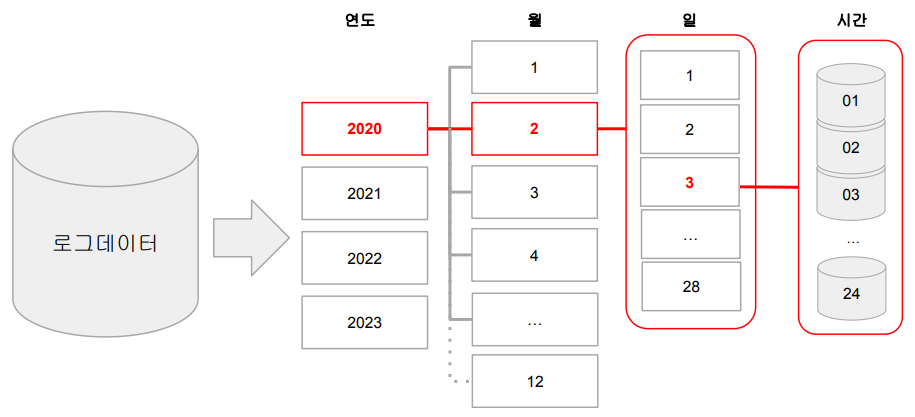 - 데이터 자체를 연도-월-일의 폴더 구조로 저장