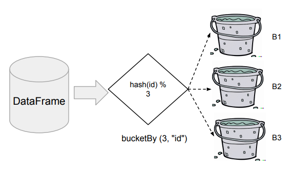 - DataFrameWriter의 bucketBy 함수 사용