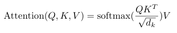 이는 기존의 dot-product attention 방식에서 scailing factor(1/root(dk))를 곱해준 결과입니다. dk가 너무 커지는 경우 gradient가 매우 작아지기 때문에 dot product를 스케일링하여 이를 해결하는 방식입니다.