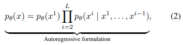 이러한 식은 LLM의 핵심적인 성질을 결정하는 요소이지만, 해당 논문에서는 LLM이 반드시 자기회귀방식(Eq.2)가 필요한 것은 아니며, LLM에서 확산 모델이 유효하게 작용할 수 있다고 주장합니다.
