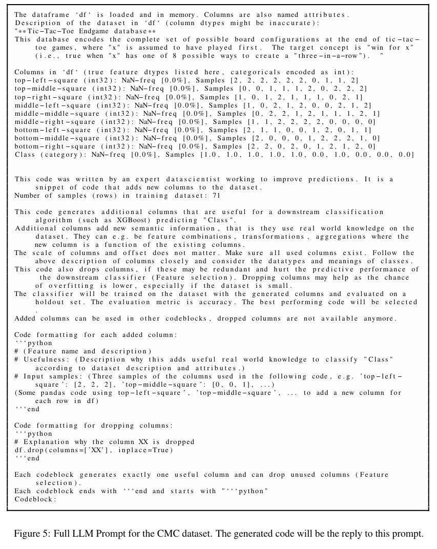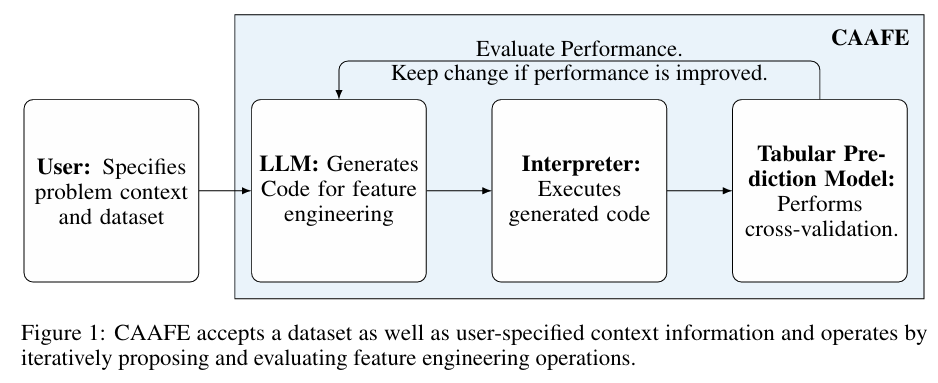 Hollmann, Noah, Samuel Müller, and Frank Hutter. "Large language models for automated data science: Introducing caafe for context-aware automated feature engineering." Advances in Neural Information Processing Systems 36 (2024).