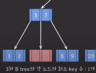 * 「M/2¬-1 : 각 노드의 최소 key 수(root노드 제외)