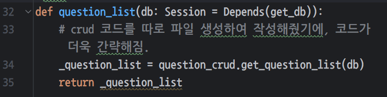 CRUD 코드 따로 분리해서 작성하기. question_crud.py